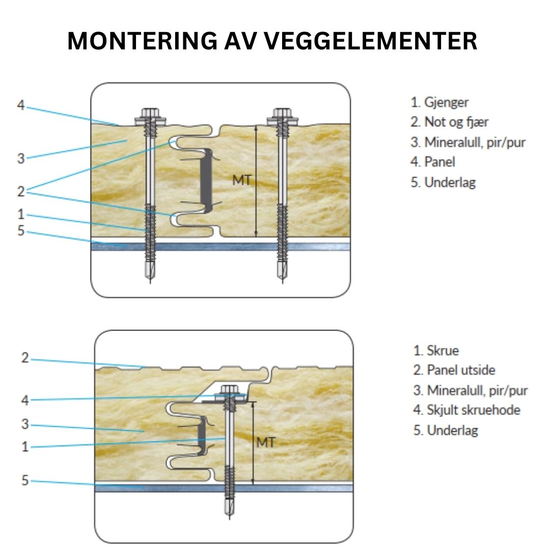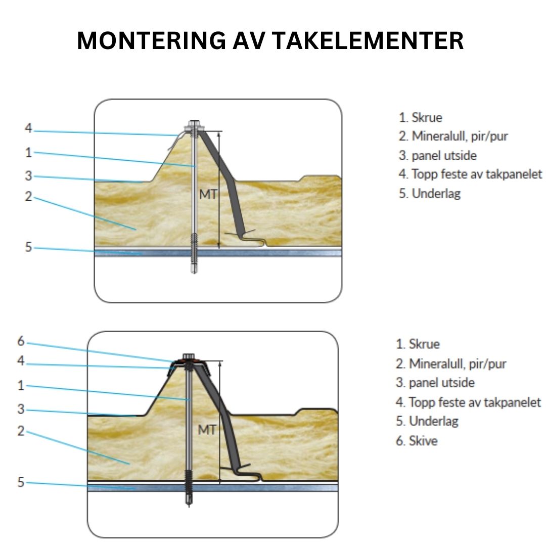 Type: sandwichskrue for kledning mellom 70 og 120 mm tykkelse