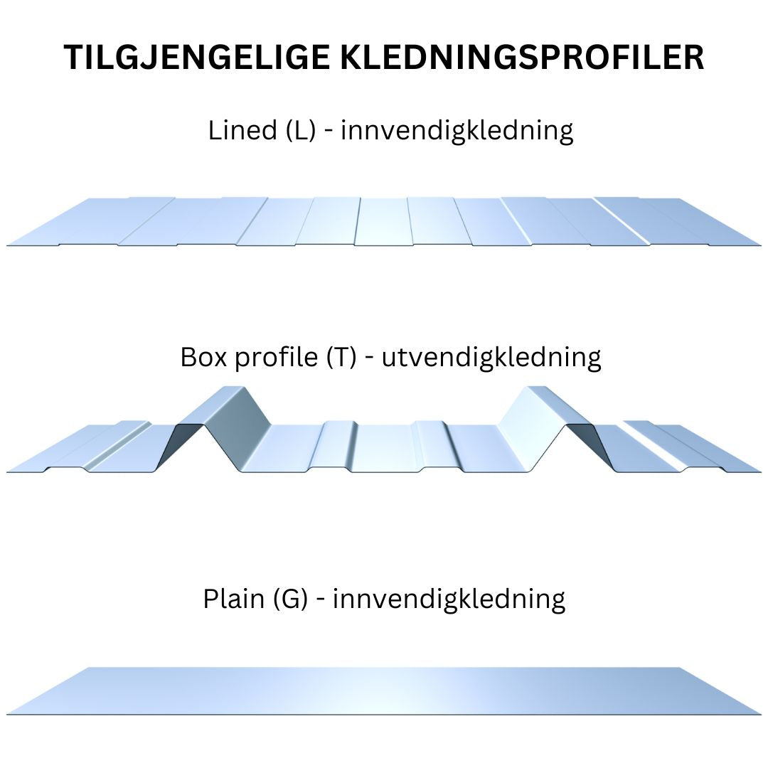 - Kledningstykkelse i mm: 0,4 / 0,5 / 0,6 / 0,7.